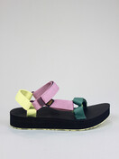 Teva's iconic Universal style with an extra boost from their cushioned 1.25 inch midform sole, featuring their famous velcro strap upper in a combination of jewel tones and neon lime