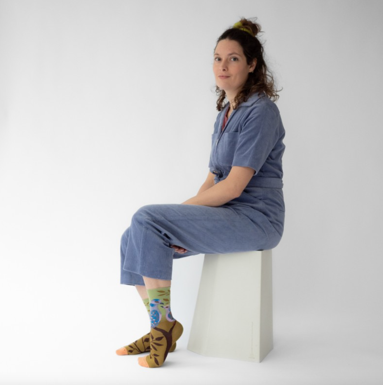 Cotton trouser sock in mossy green featuring a pair of turtle doves