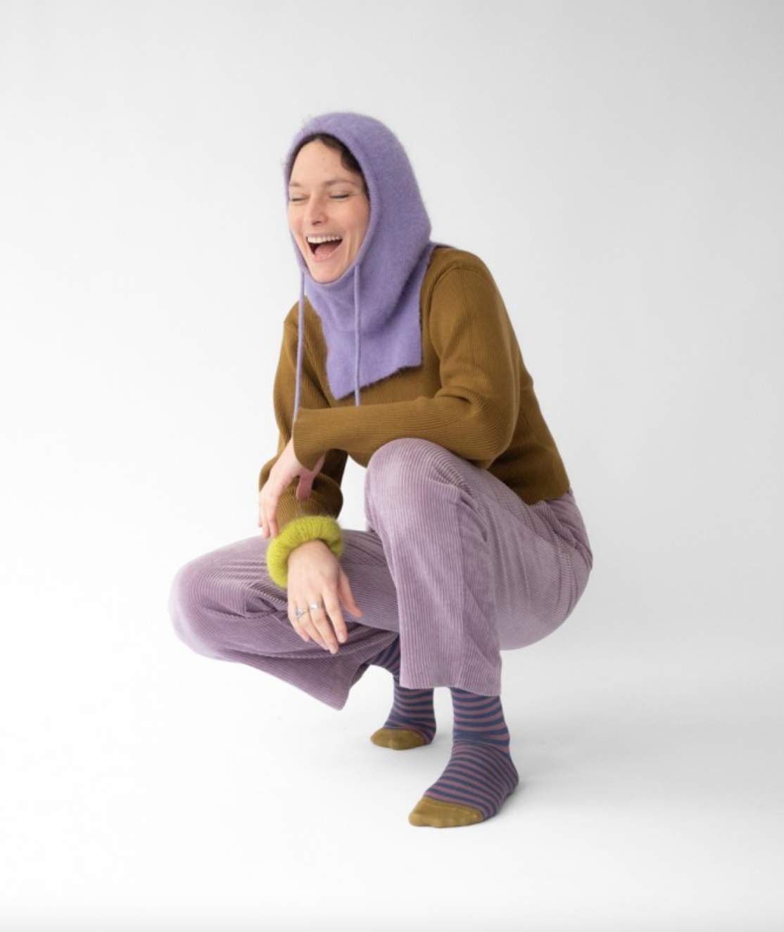 Cotton trouser sock in a muted multicolour striped pattern featuring mauve and blue